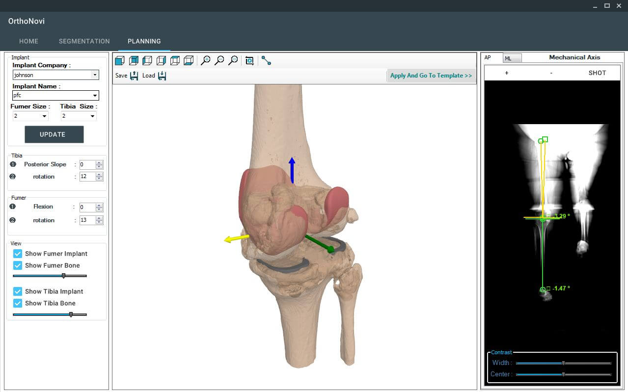 Software based on mechanical axis of the reconstructed bone captured from CT scan images.