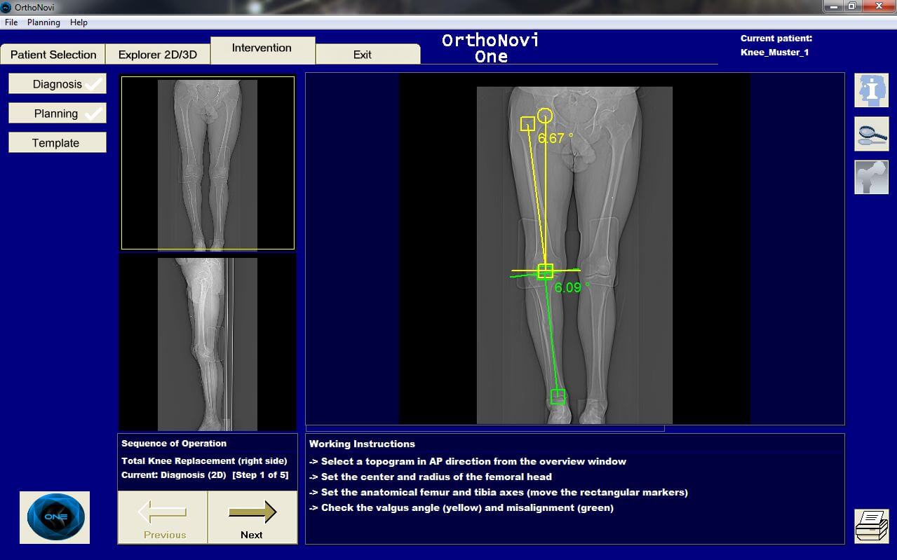The output of OrthoNovi is an electronic file with format of STL containing a patient-specific templates (PST) and/or custom made surgical guides coming based on the surgical planning.